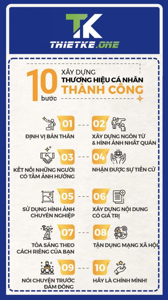 Thương hiệu cá nhân không chỉ giúp bạn gia tăng lợi thế cạnh tranh trong kinh doanh mà còn giúp thu hút thêm khách hàng đến với doanh nghiệp của bạn. Chính vì vậy xây dựng thương hiệu cá nhân là một vấn đề cực kỳ được quan tâm hiện nay. Thương hiệu cá nhân có thể được hiểu là “những gì người ta nói về bạn khi bạn không có mặt ở đó”. Danh tiếng, những điều khiến người khác nhận ra bạn được tạo ra từ cách bạn tự quảng bá tên tuổi của bản thân.THIETKE.ONE – 10 Bước xây dựng Thương hiệu cá nhân thành công